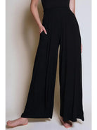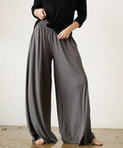 Elastic waist wide leg pant. Bamboo jersey. Made in USA. Crazy wide open palazzo with pockets, with smocked elastic waist. Can be casual or dressy.